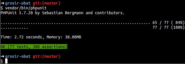Aplikasi Grosir Obat adalah sebuah sistem kasir (Point of Sales) dan manajemen produk obat yang dibuat menggunakan framework Laravel, dibangun dengan Test-Driven Development.
