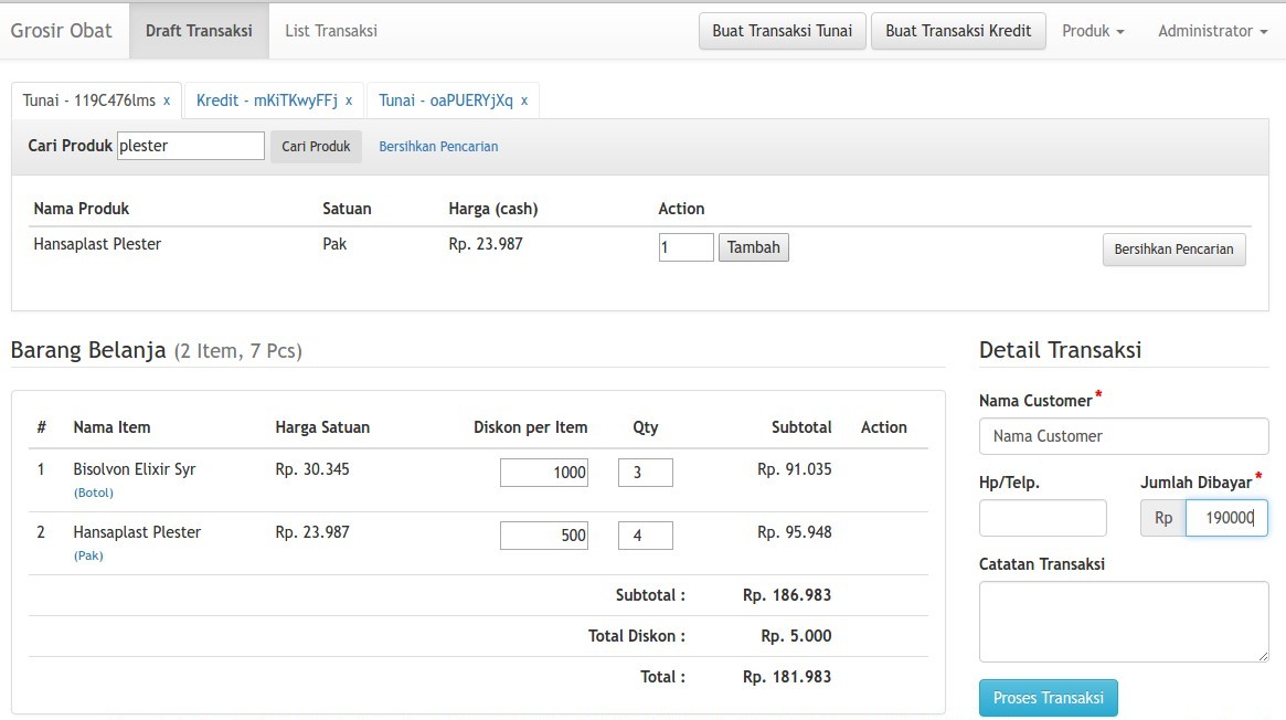 - Klik tombol Transaksi Tunai (atau Transaksi Kredit)